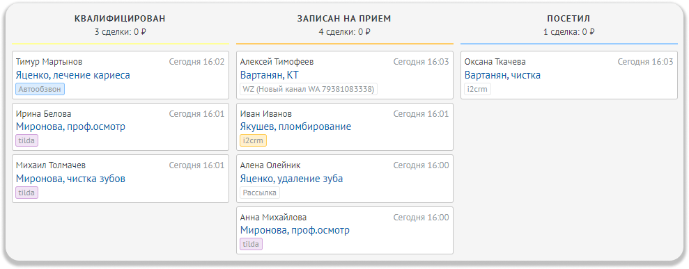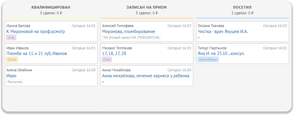 Так, например, для медицинских клиник в названиях сделок важно сразу видеть фамилию врача и оказываемую услугу, чтобы быстро работать с пациентами. А для онлайн-магазинов - название товара и город для доставки, чтобы понимать, о каком заказе идет речь.